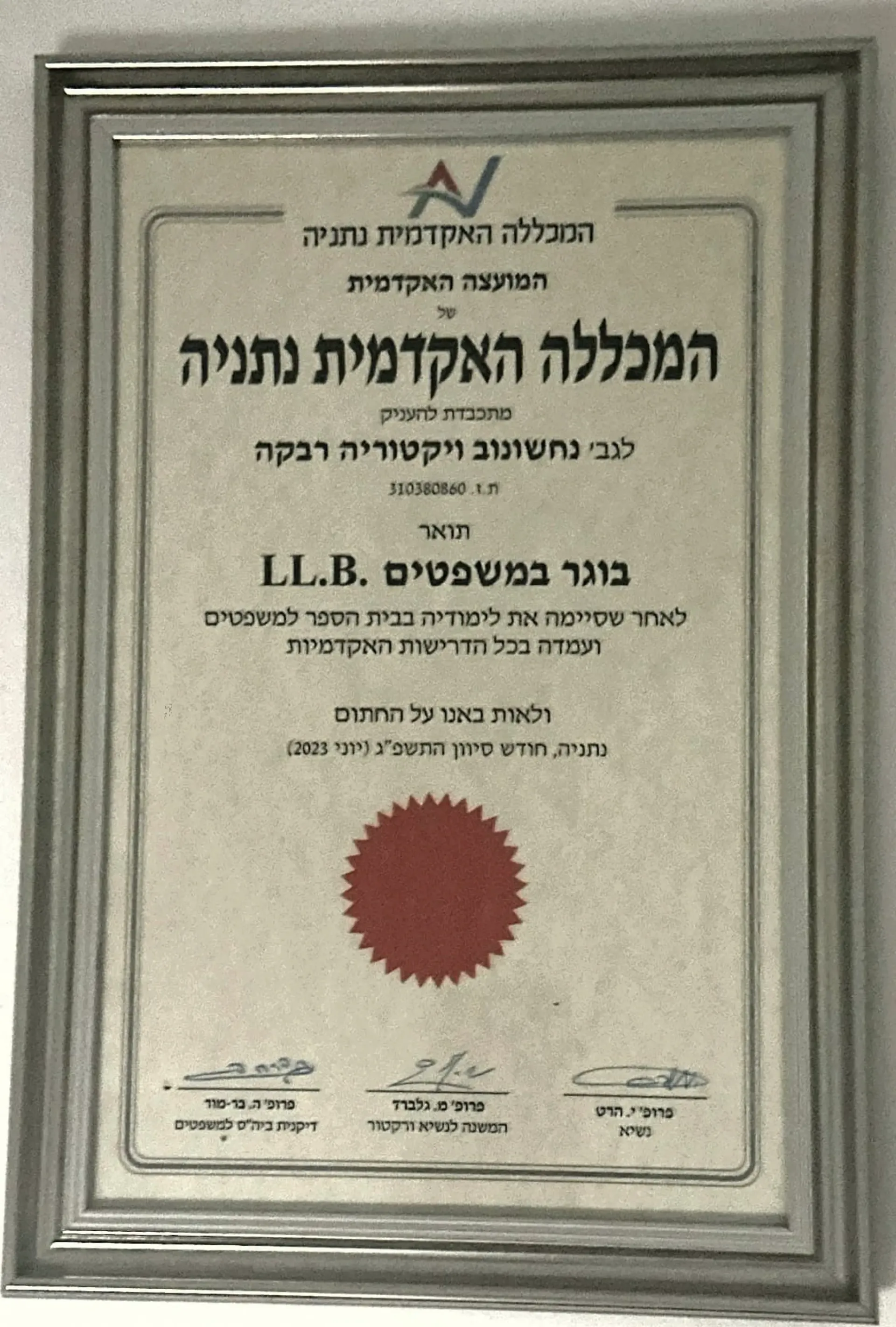 משרד עורכי דין ויקי נחשונוב הינו משרד בוטיק משפחתי המוביל בתחומו, המתמחה בשני תחומי ליבה: משפט פלילי ודיני משפחה וגירושין. אנו מציעים שירותים משפטיים ברמה הגבוהה ביותר, תוך שילוב של מקצועיות בלתי מתפשרת, יחס אישי ופתרונות יעילים המותאמים לצרכי לקוחותינו.