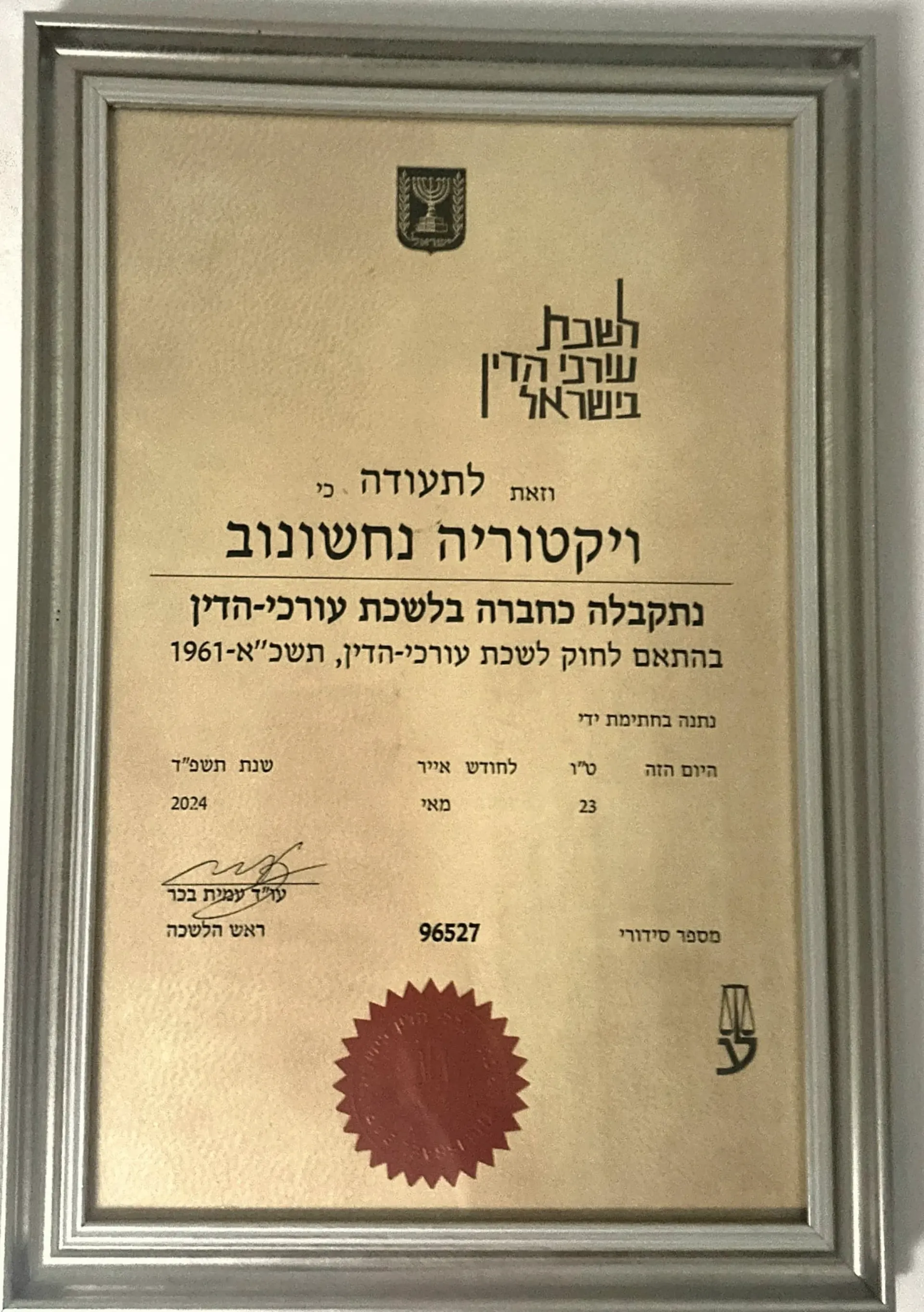 אני, ויקי נחשונוב, עורכת דין, כאן כדי להעניק לכם ליווי משפטי מקצועי ואישי, מתוך אמונה שכל לקוח ראוי לייצוג שמכבד את אנושיותו ואת סיפורו האישי.
